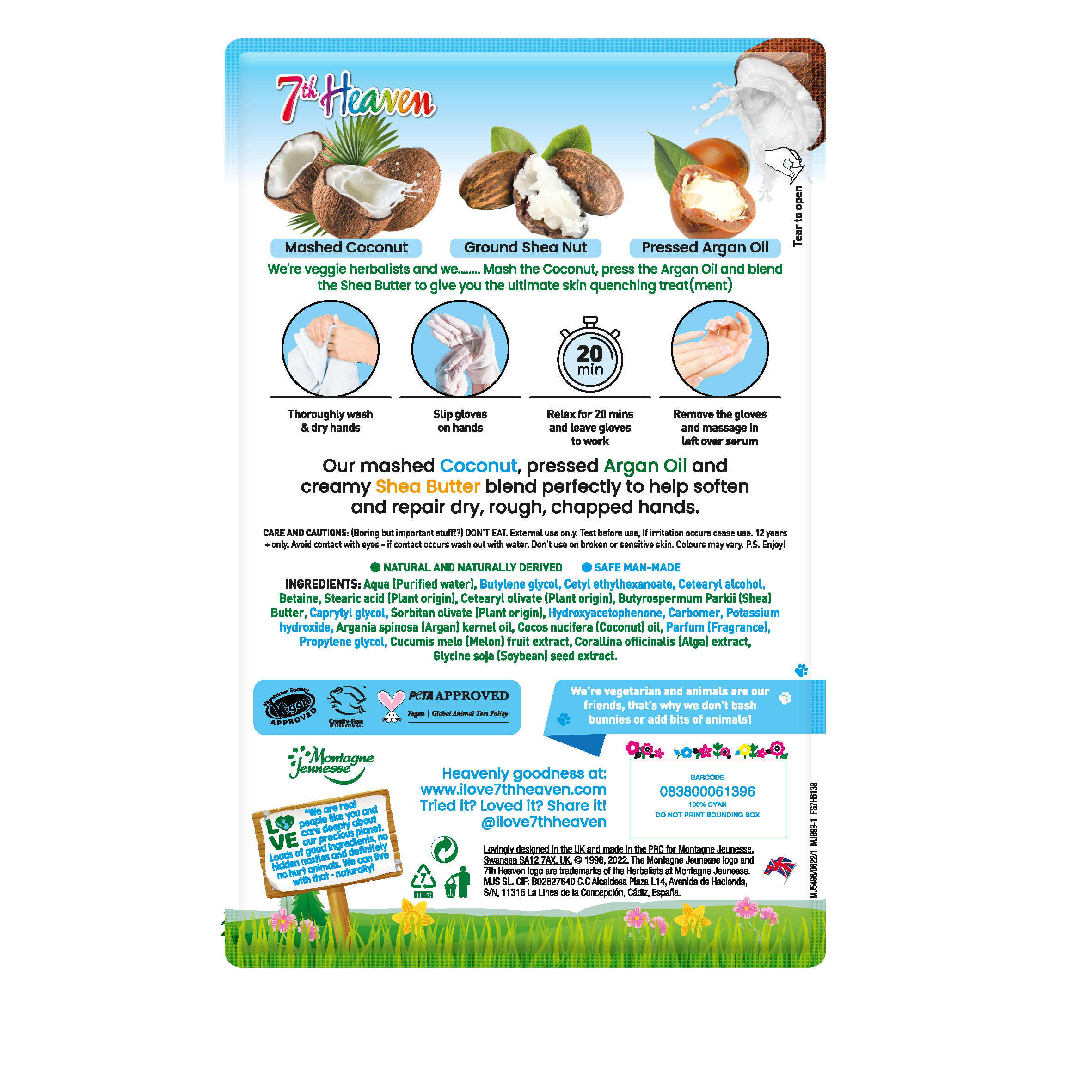 Redă finețea mâinilor tale cu masca pentru mâini 7th Heaven cu nucă de cocos, un tratament intensiv de tip mănușă, creat special pentru pielea uscată și deshidratată. Infuzată cu ingrediente naturale prețioase, această mască oferă o experiență de spa direct la tine acasă, lăsând pielea vizibil mai moale și profund hrănită.