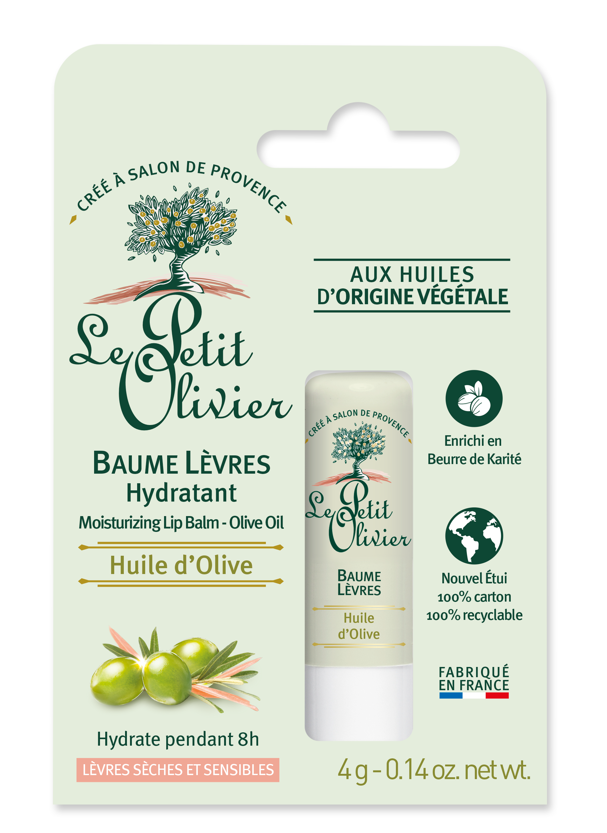 LE PETIT OLIVIER Balsam de Buze Nutritiv cu Ulei de Măsline 4g - Hidratare Intensă, Catifelare Imediată, Formulă Naturală, Fără Parabeni