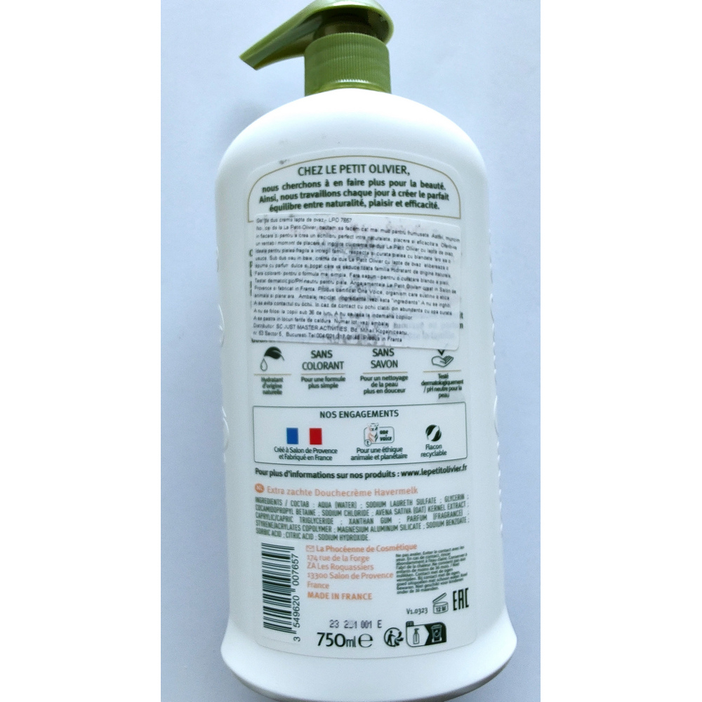 Gel de Duș Cremă Le Petit Olivier cu Lapte de Ovăz, 750ml – Calmare și Delicatețe pentru Pielea Sensibilă