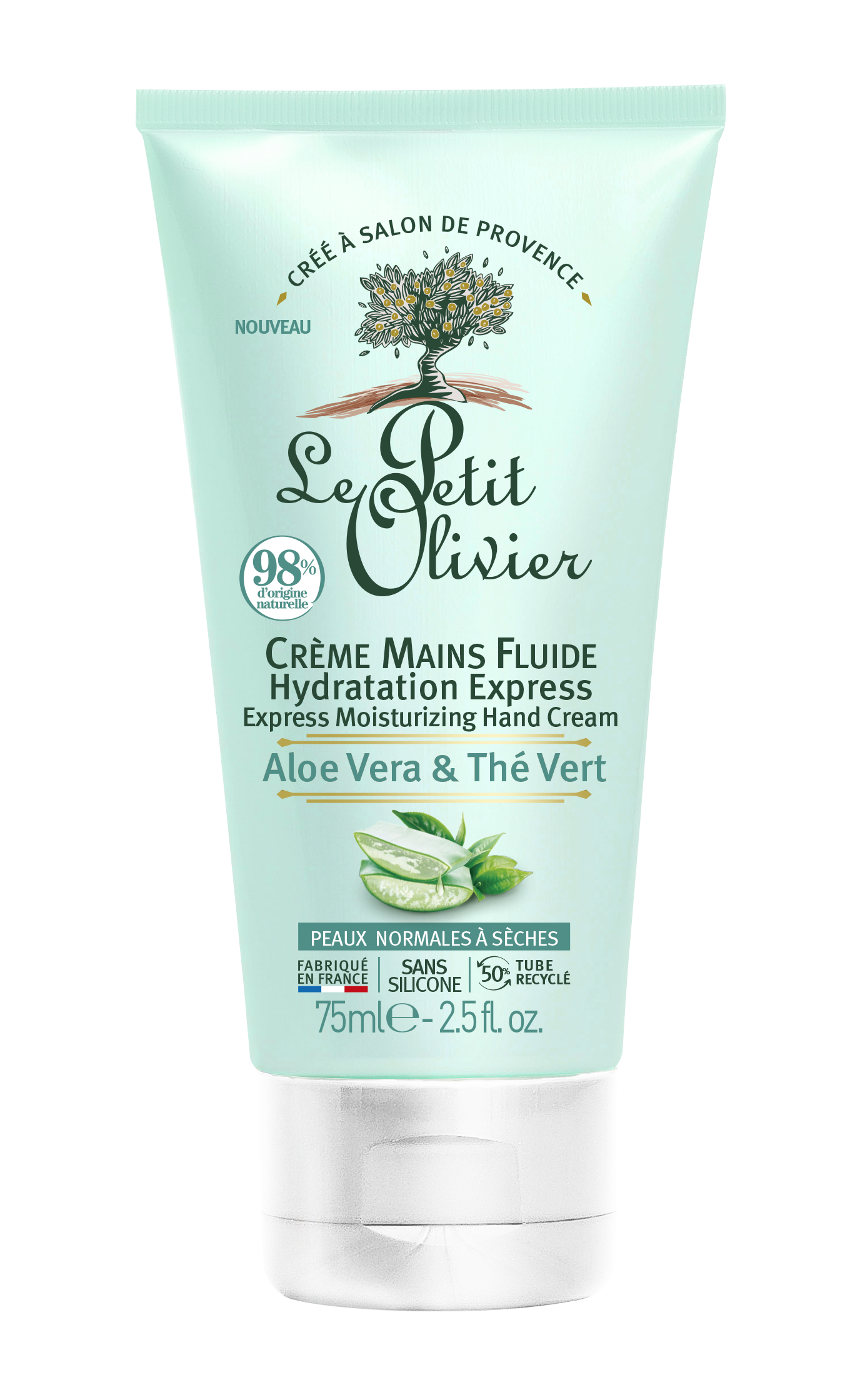 Le Petit Olivier Cremă Hidratantă pentru Mâini cu Aloe Vera și Ceai Verde, 75ml – Prospețime si Hidratare