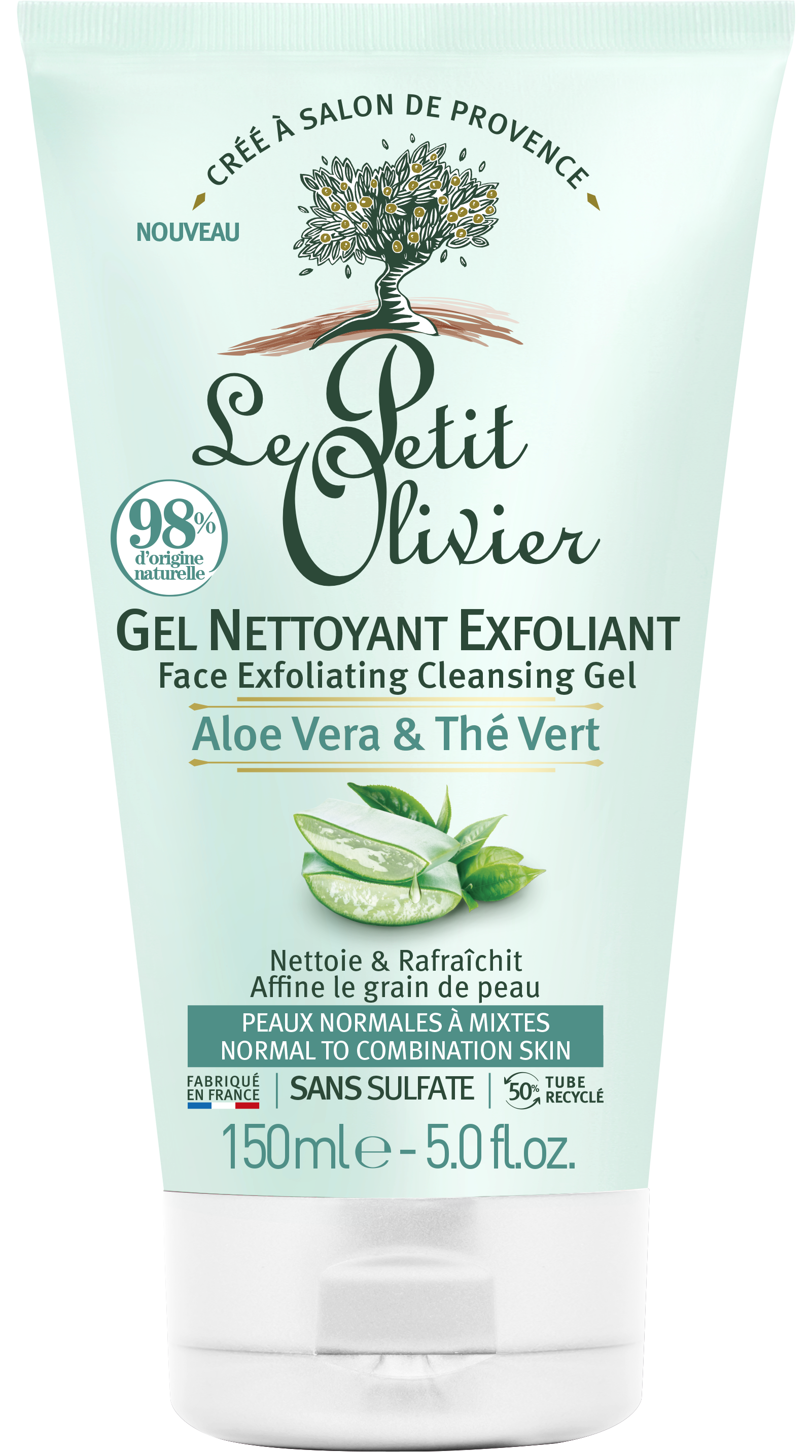 Gel Curățare Exfoliant Le Petit Olivier Aloe Vera & Ceai Verde, 150ml